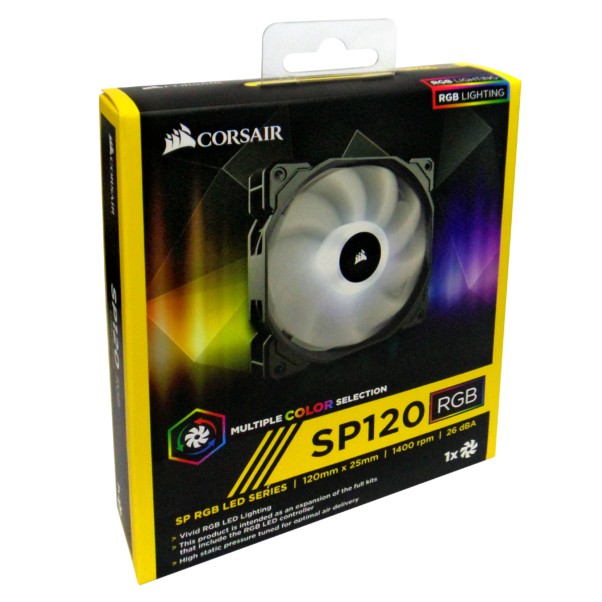 Sp120 rgb led high performance 120mm fan 19 99 usd the corsair sp120 rgb led high static pressure pc case fans combine excellent air delivery with hub mounted rgb leds for vivid lighting effects.