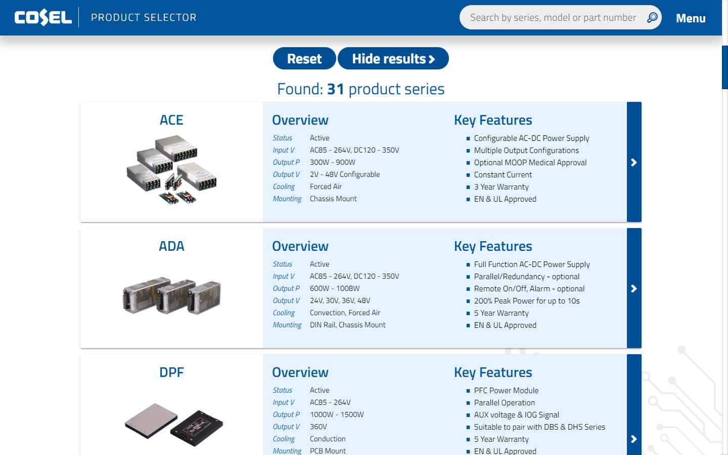 Product Selector App Cosel Europe Gmbh
